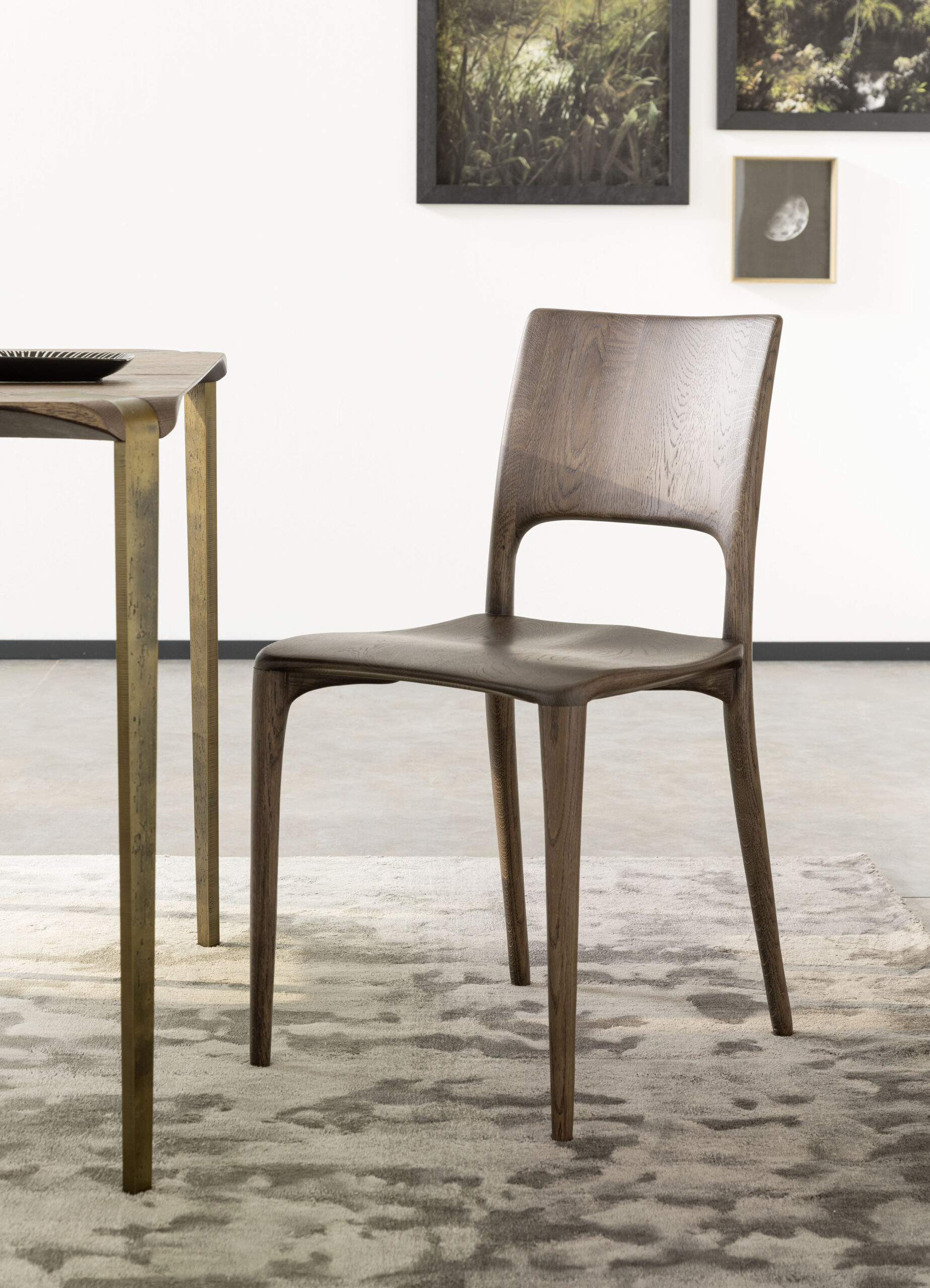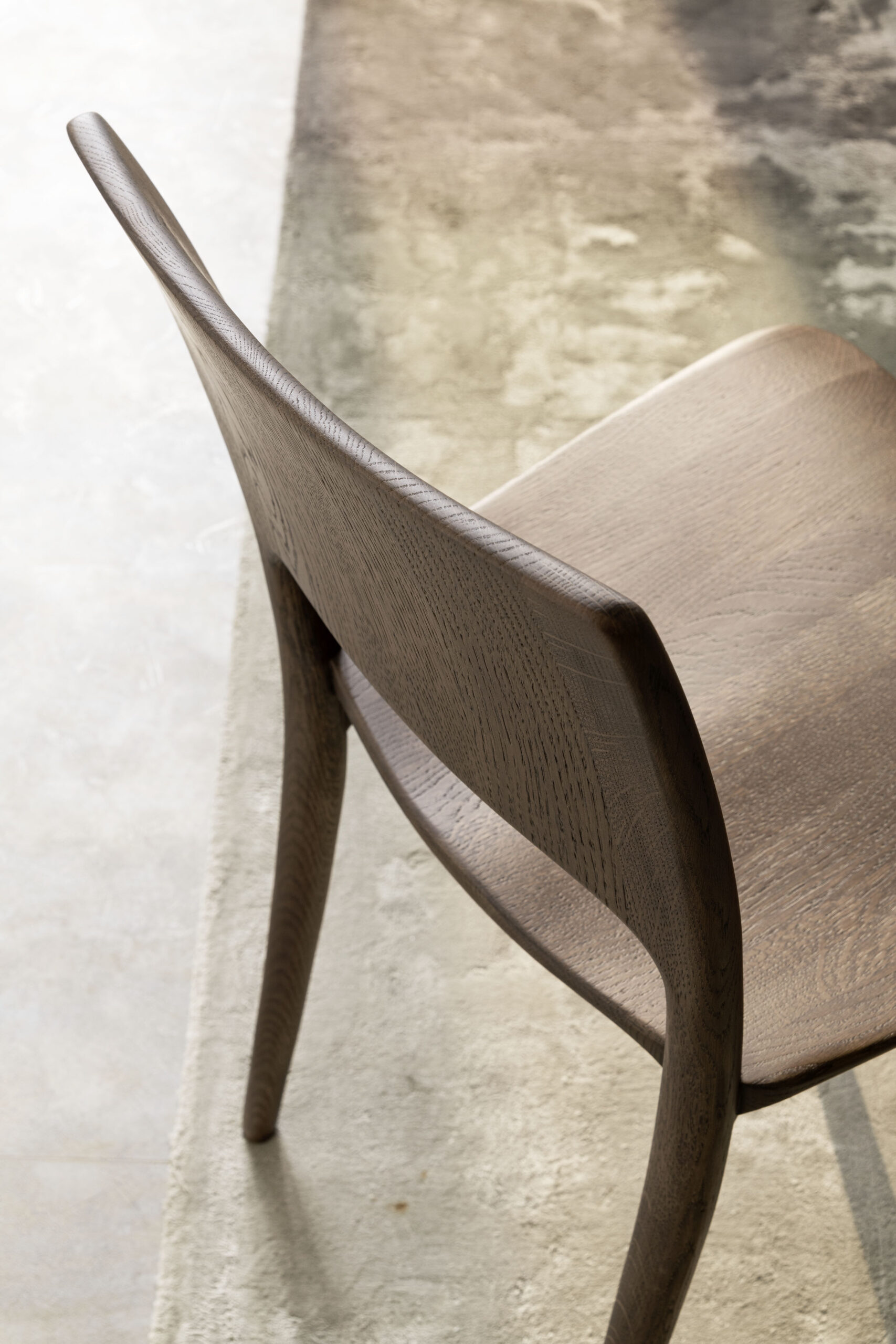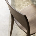 Un véritable objet de design entièrement réalisé en chêne massif avec des éléments usinés dans du bois massif. Le dossier et les pieds arrière forment un seul élément de forme, tout comme l’assise ergonomique pour les fesses.