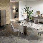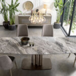 La table Cannes est le résultat du crayon du centre de style Altacorte. Intrépide et imposante malgré la petite taille du piètement, la table Cannes est reconnaissable aux lignes géométriques essentielles du piètement en métal, enrichies d’un motif raffiné de tuyaux d’orgue qui peut être personnalisé avec des finitions brossées ou laquées à la main. Le support robuste crée un contraste équilibré et original avec les plateaux en bois massif et en céramique. L’effet est une structure minimaliste qui met en valeur l’extraordinaire beauté des matériaux et le savoir-faire artisanal typique des produits Made in Italy.