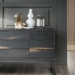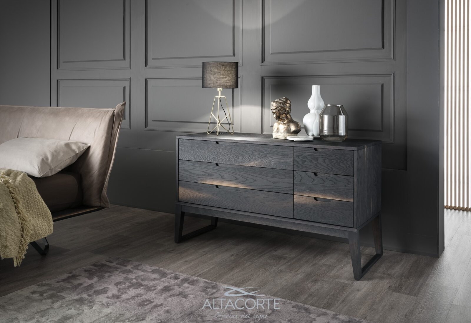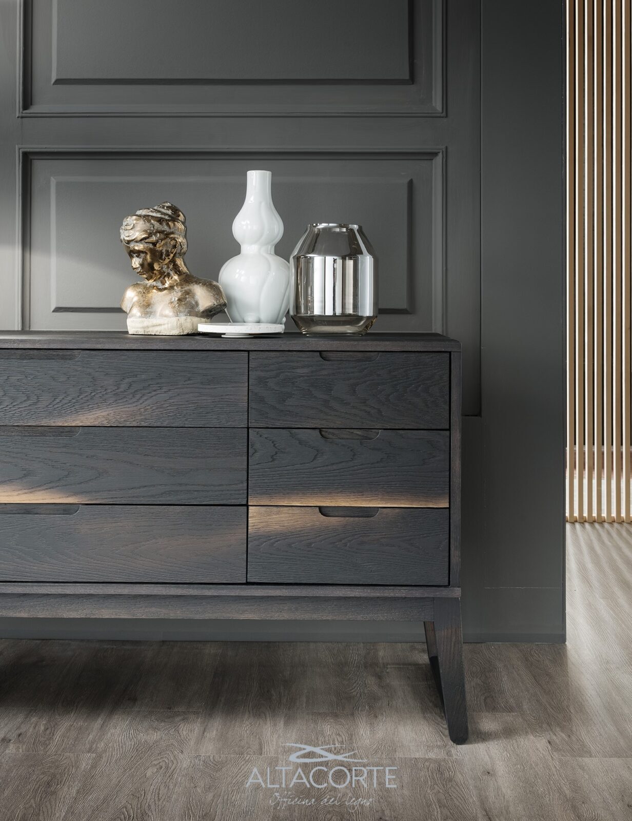 Commode avec un design sophistiqué, jamais banal, entièrement réalisée en chêne massif brossé, affinée habilement par des artisans experts. Les détails font la différence.