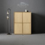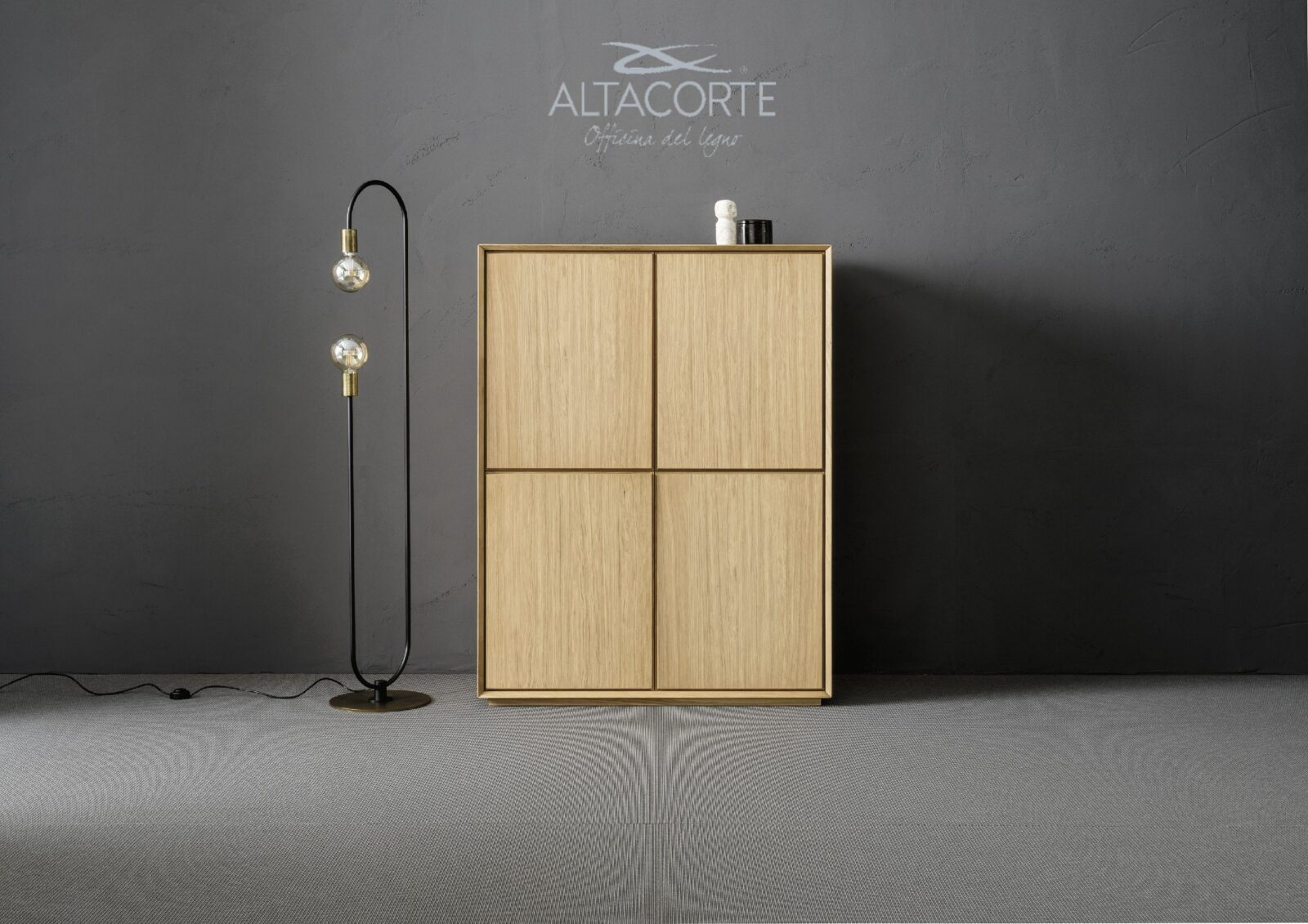 Un classique du style Altacorte. Bahut avec caisson entièrement en chêne ou en noyer, créé par les mains d’artisans experts. Une ligne essentielle mais jamais banale qui peut être mise en valeur par des portes en ciment