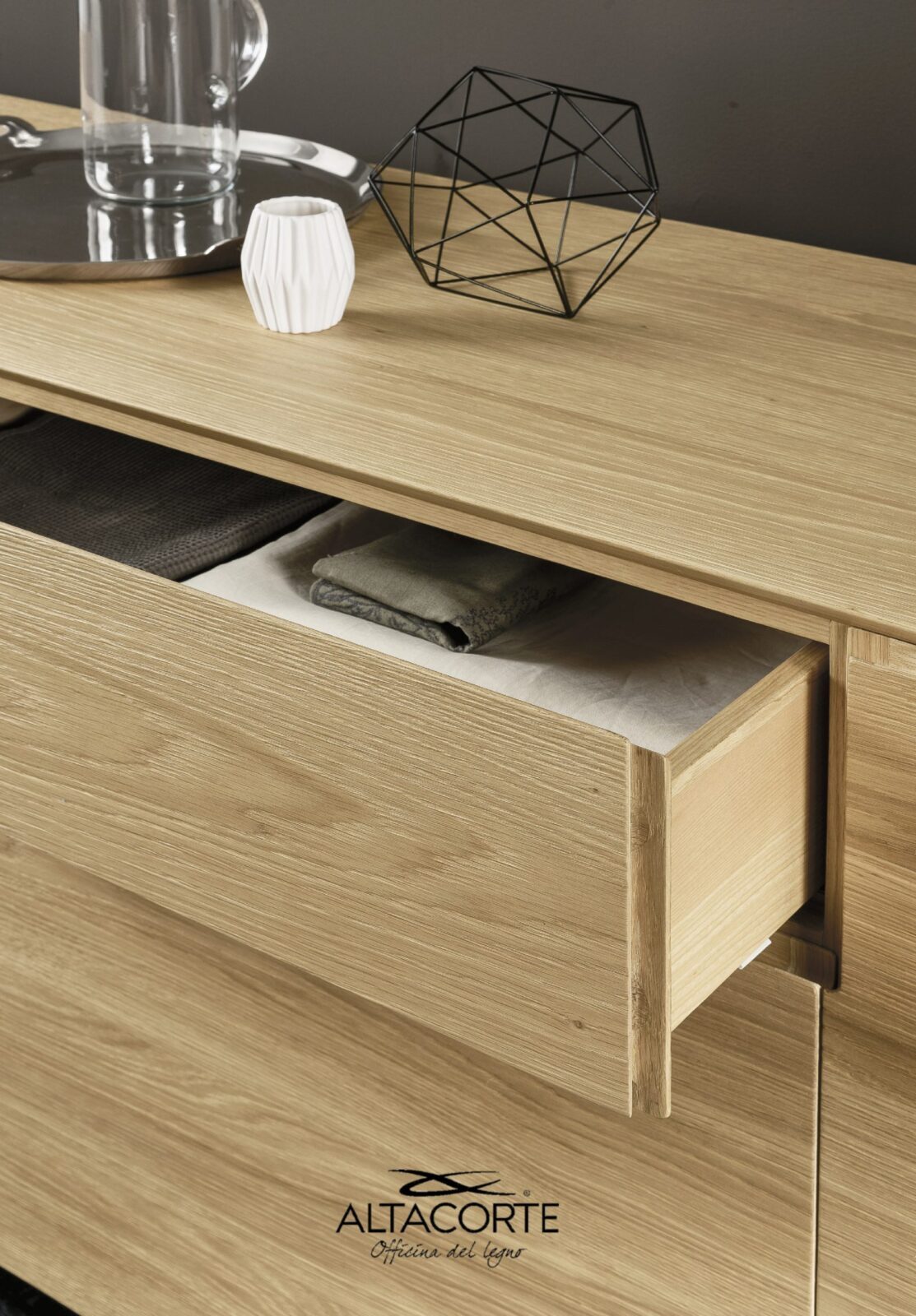 Bahut avec caisson entièrement en chêne. Joue brossée. Ses lignes sophistiquées rendent le bahut un élément de succès assuré et de valeur absolue pour l’ennoblissement de vos environnements