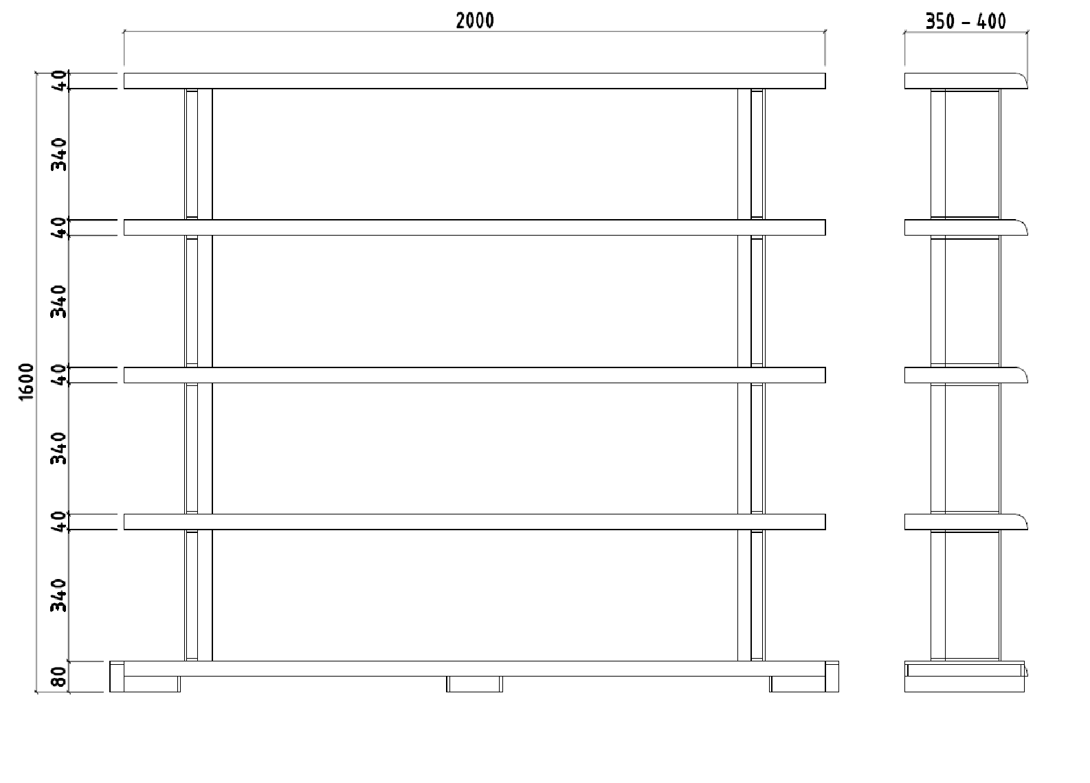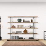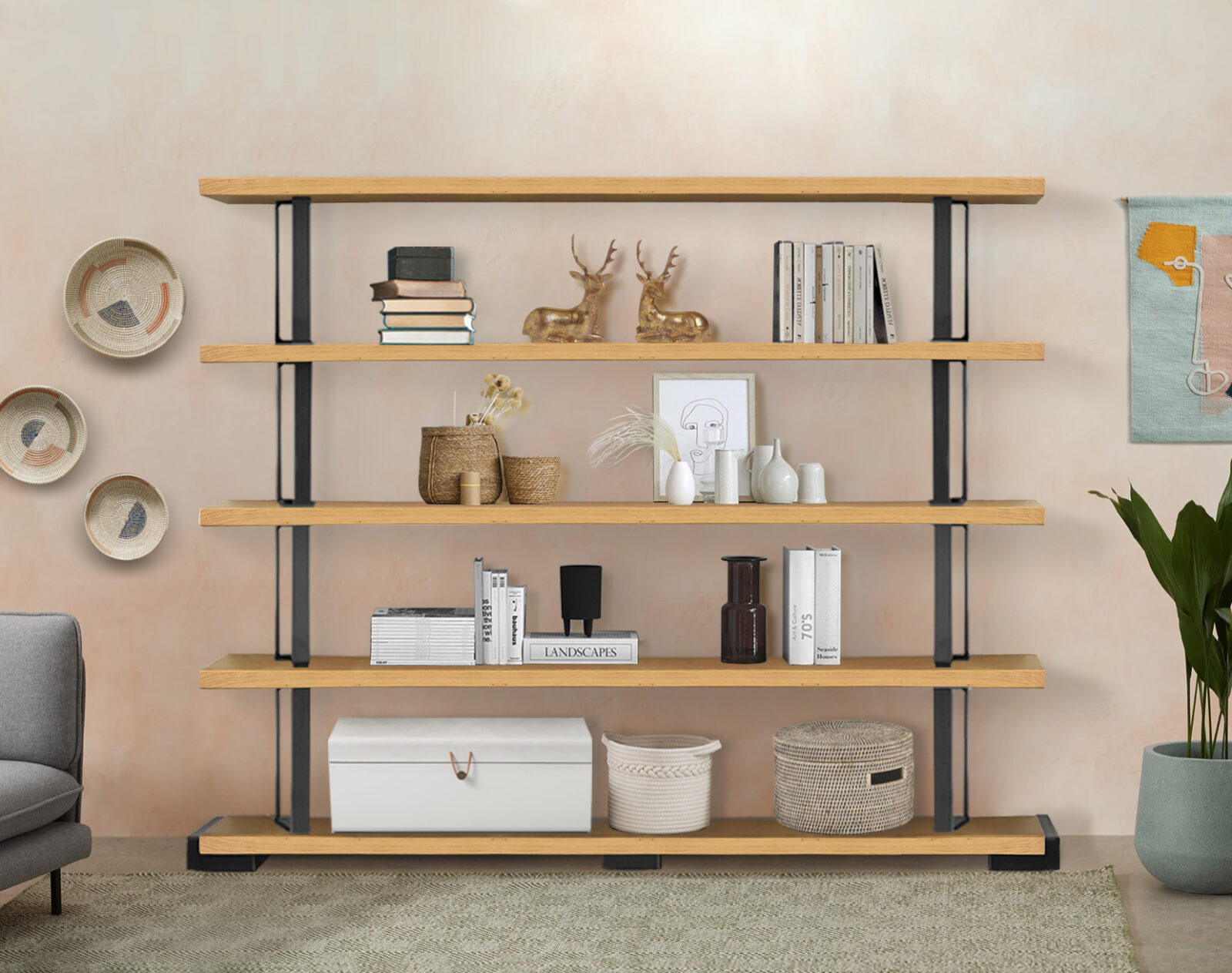 Supports structuraux en fer, étagères en chêne massif d’ép. 40 mm