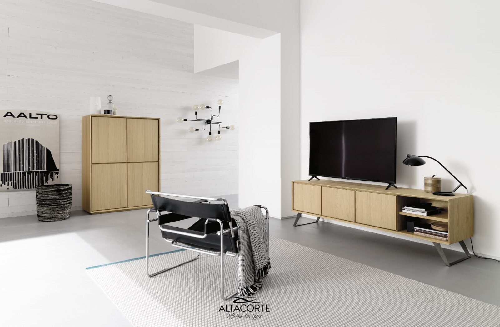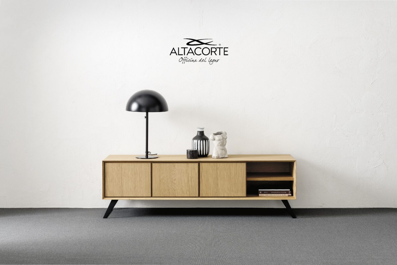 Un classique du style Altacorte. Bahut avec caisson entièrement en chêne ou en noyer, créé par les mains d’artisans experts. Une ligne essentielle mais jamais banale qui peut être mise en valeur par des portes en ciment