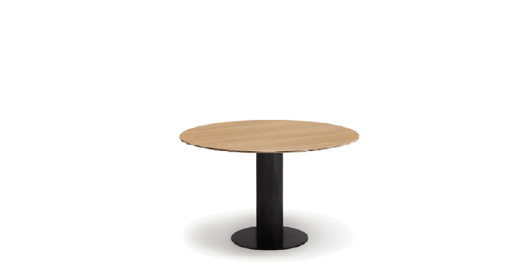 Base en acier pouvant être combinée avec des plateaux de 40 mm d’épaisseur en chêne européen massif ou en noyer canaletto massif en trois types de bords disponibles : bord droit, bord incliné et bord façonné. Colles vinyliques à l’eau, peintures acryliques bi-composantes.