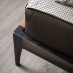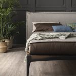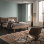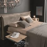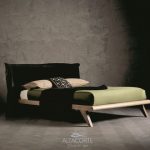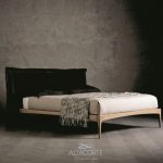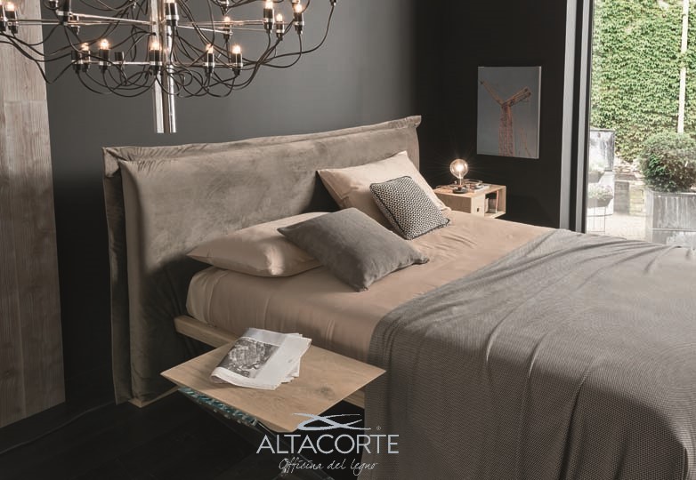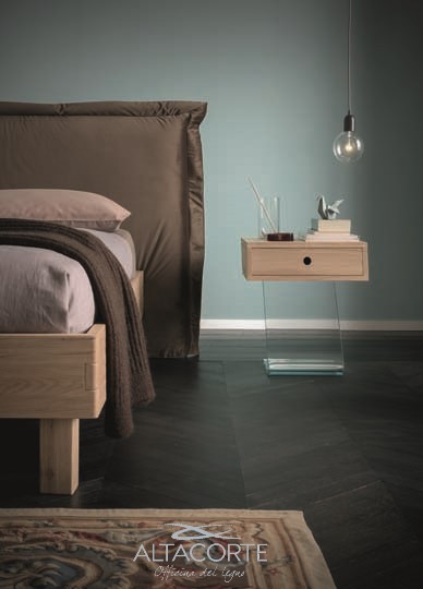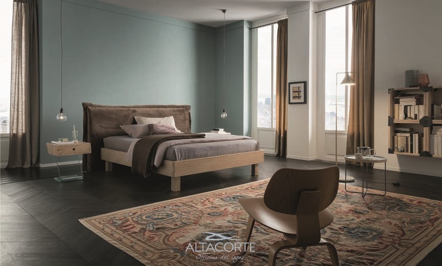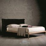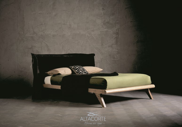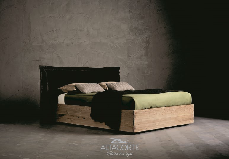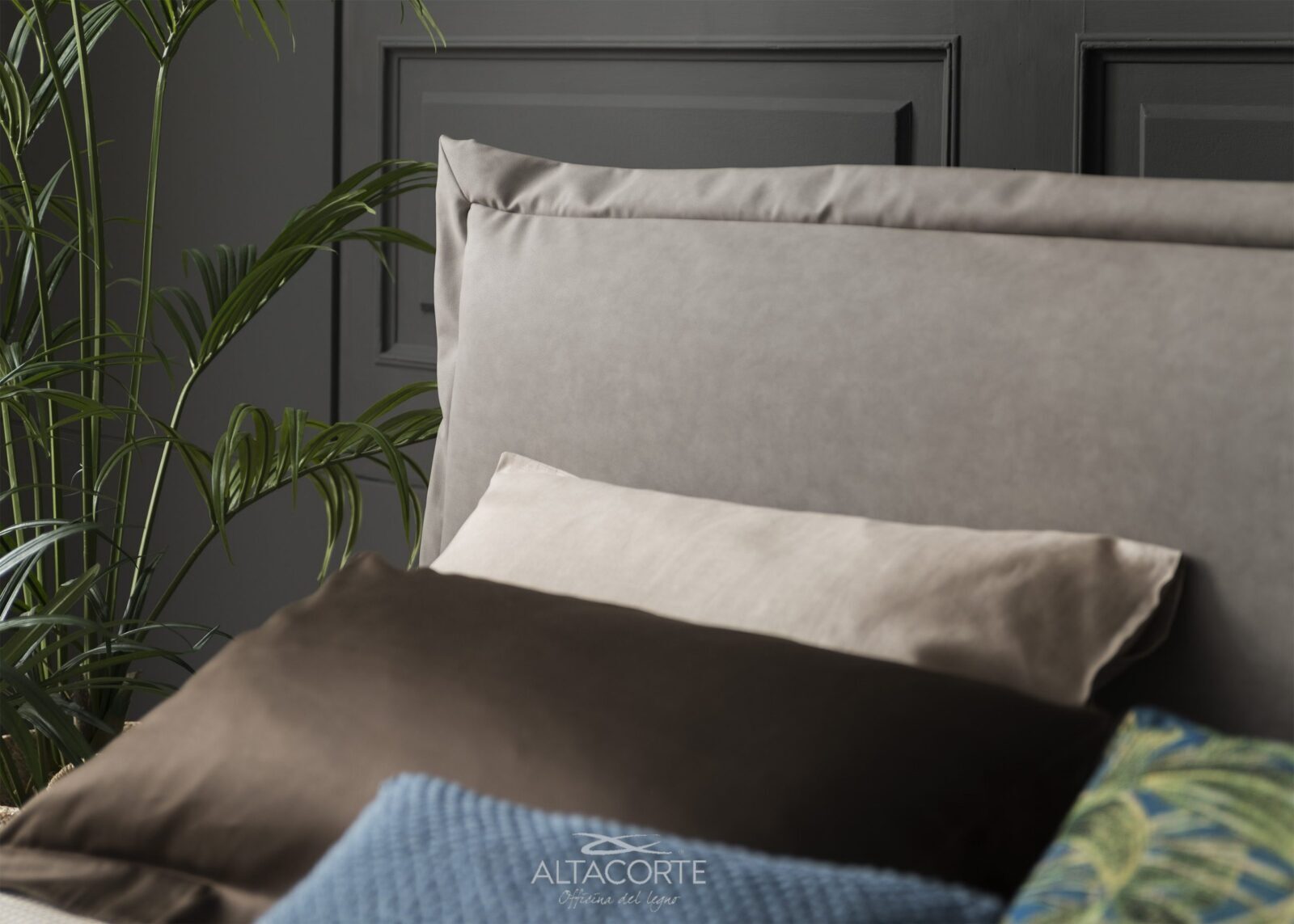 Lit avec cadre en chêne européen massif. La tête de lit en bois est constituée par de planches en bois de chêne européen massif. La tête de lit rembourrée a un noyau interne en multiplis de hêtre, revêtu en tissu, cuir ou éco-cuir déhoussables. La tête de lit peut être combinée avec huit configurations de lit différentes.
