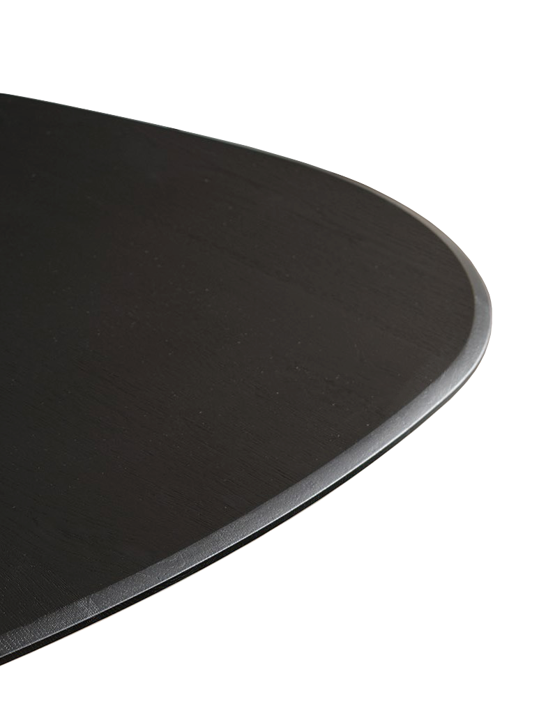 Plateaux de 30 mm d’épaisseur en chêne massif européen et chant galbé. La conformation naturelle du tronc est maintenue, y compris les changements de couleur naturels du produit. Adhésifs vinyliques à l’eau et peintures à deux composants.