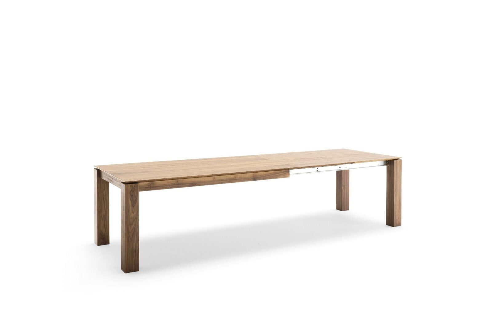 Version en noyer : structure en bois massif avec placage en noyer Canaletto, pieds de 120×120 mm, plateau ép. 25 mm en multiplis ou en lamellé-collé avec placage en noyer Canaletto sur les deux faces et encadrement en noyer. Plateau raboté. Colles vinyliques à base d’eau, peintures acryliques bi-composantes. Glissières télescopiques à billes en alliage d’aluminium.