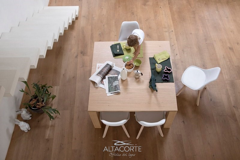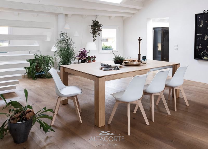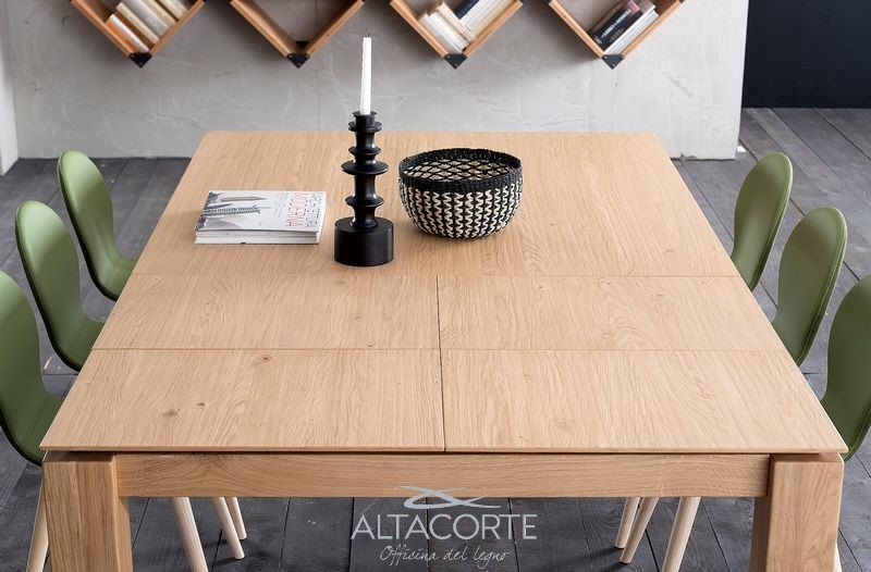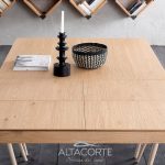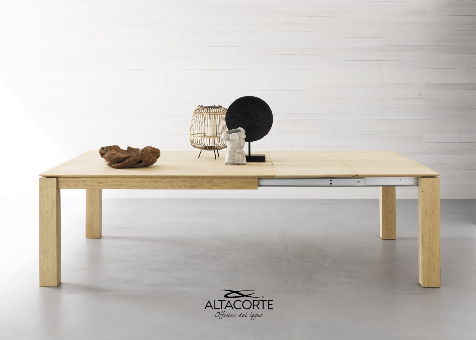 Un trait caractéristique du style Altacorte est représenté par la table Santiago. Réalisée en chêne ou en noyer, elle a une forte présence scénique grâce à sa grande capacité d’ouverture. Un design atemporel et inimitable fabriqué par des artisans experts selon des méthodes traditionnelles, qui rendent cette table éternelle et adapte à tout usage