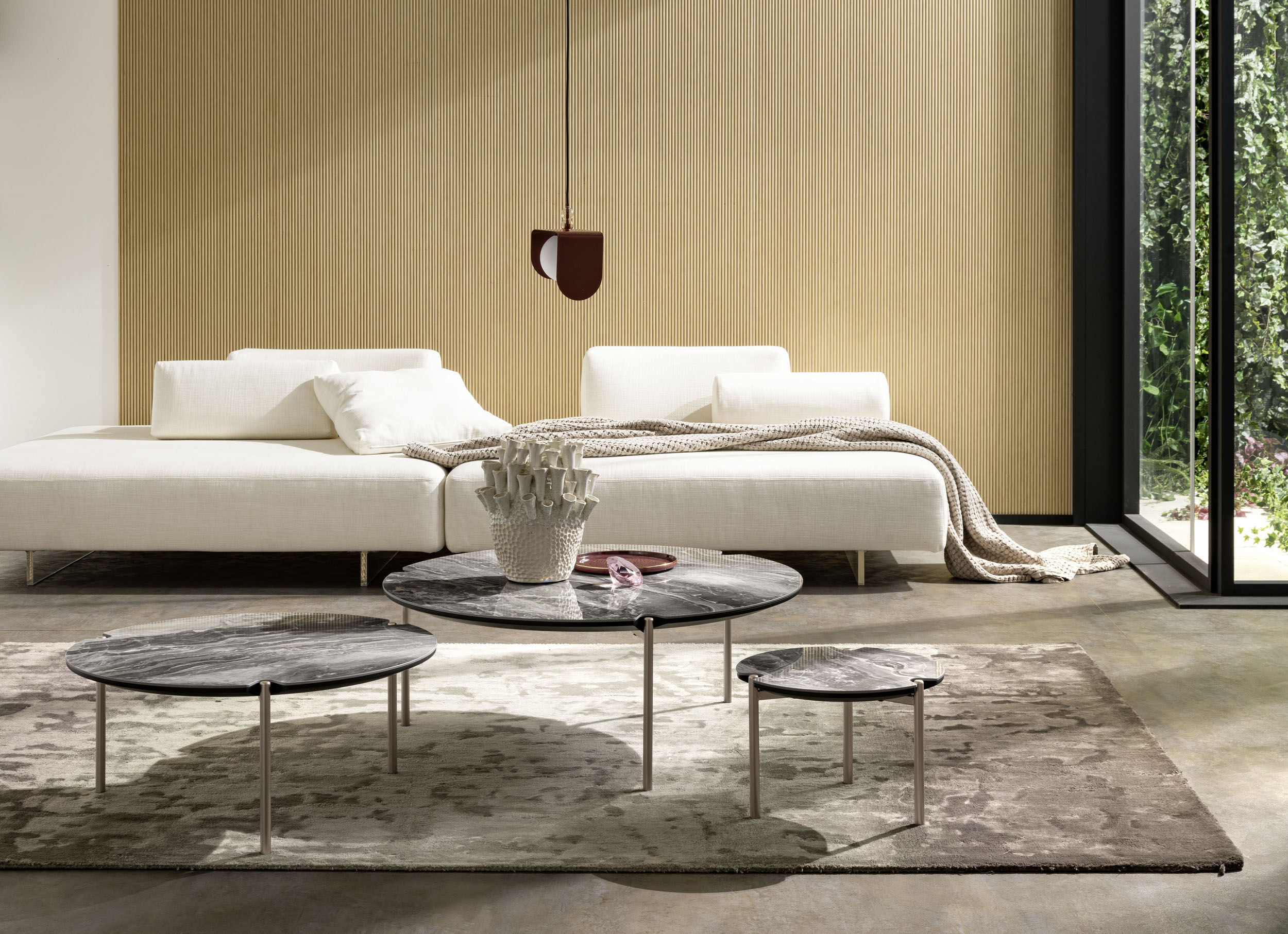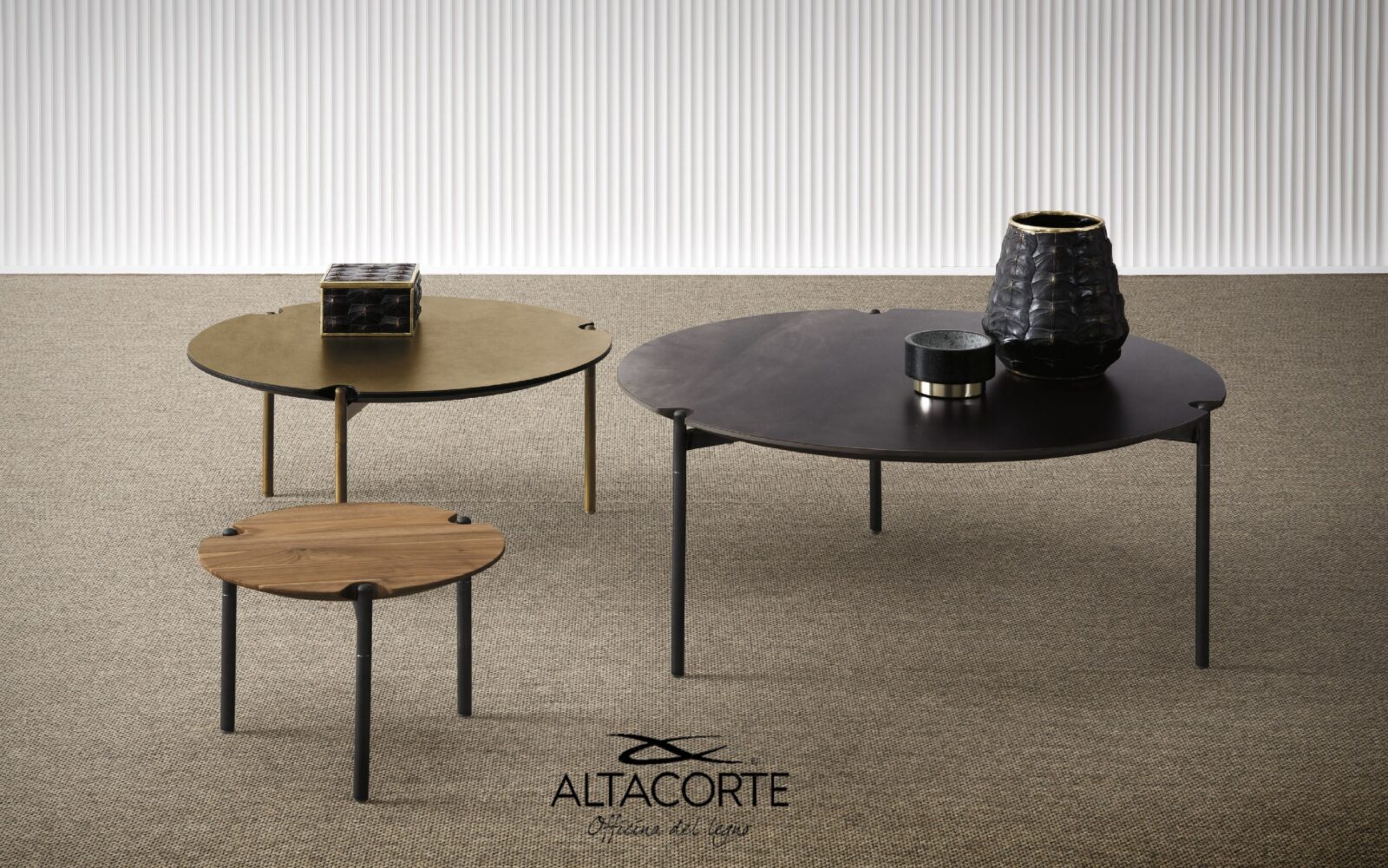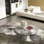 Famille de tables basses avec un design attrayant et très polyvalent, disponible en trois tailles, différents matériaux et de nombreuses couleurs. Quelle est votre configuration préférée ?